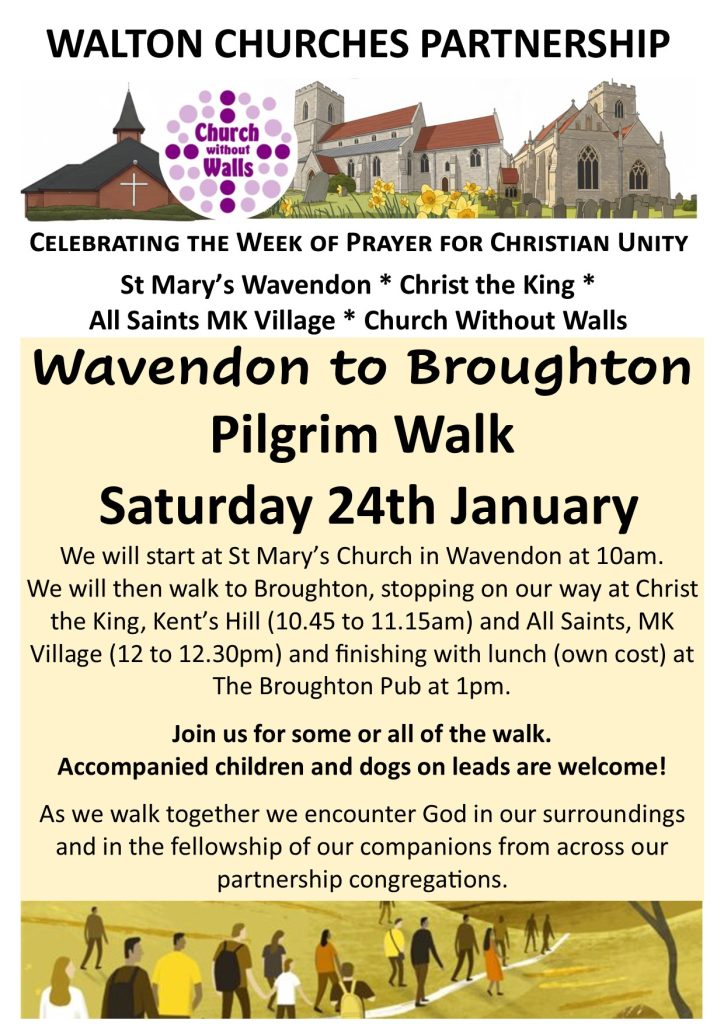 Join us as we travel from St. Marys in Wavendon to All Saints via Christ the King in Kents Hill on Saturday 24th January.