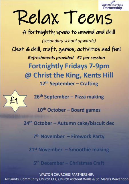Our church congregation – along with St. Mary’s Wavendon, Church Without Walls Broughton and Christ the King Kent’s Hill – form Walton Churches Partnership (WCP).