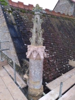The stonemasons have finished repairing the pinnacle at the North East corner of the church and the decorative stonework on the plain window in the chancel. They have also repaired some stonework on the tower parapet and repaired the plaster of the nave and vestry ceilings as well as replacing some missing roof tiles.